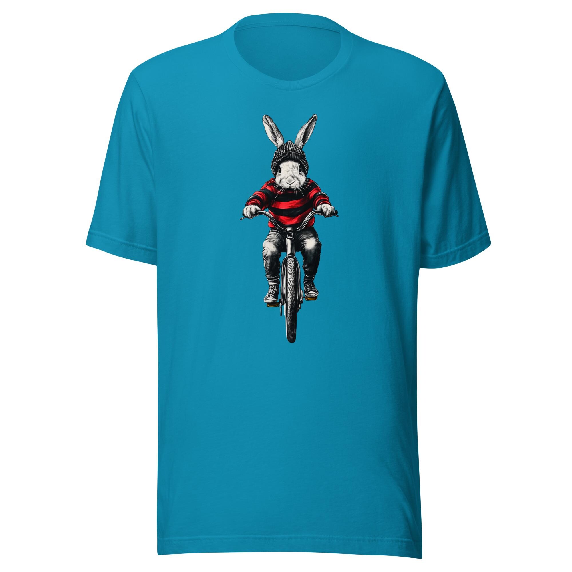 This t-shirt features a rabbit on a bicycle, looking ready for a grand adventure. Wear it and let this adventurous bunny pedal some joy into your day!