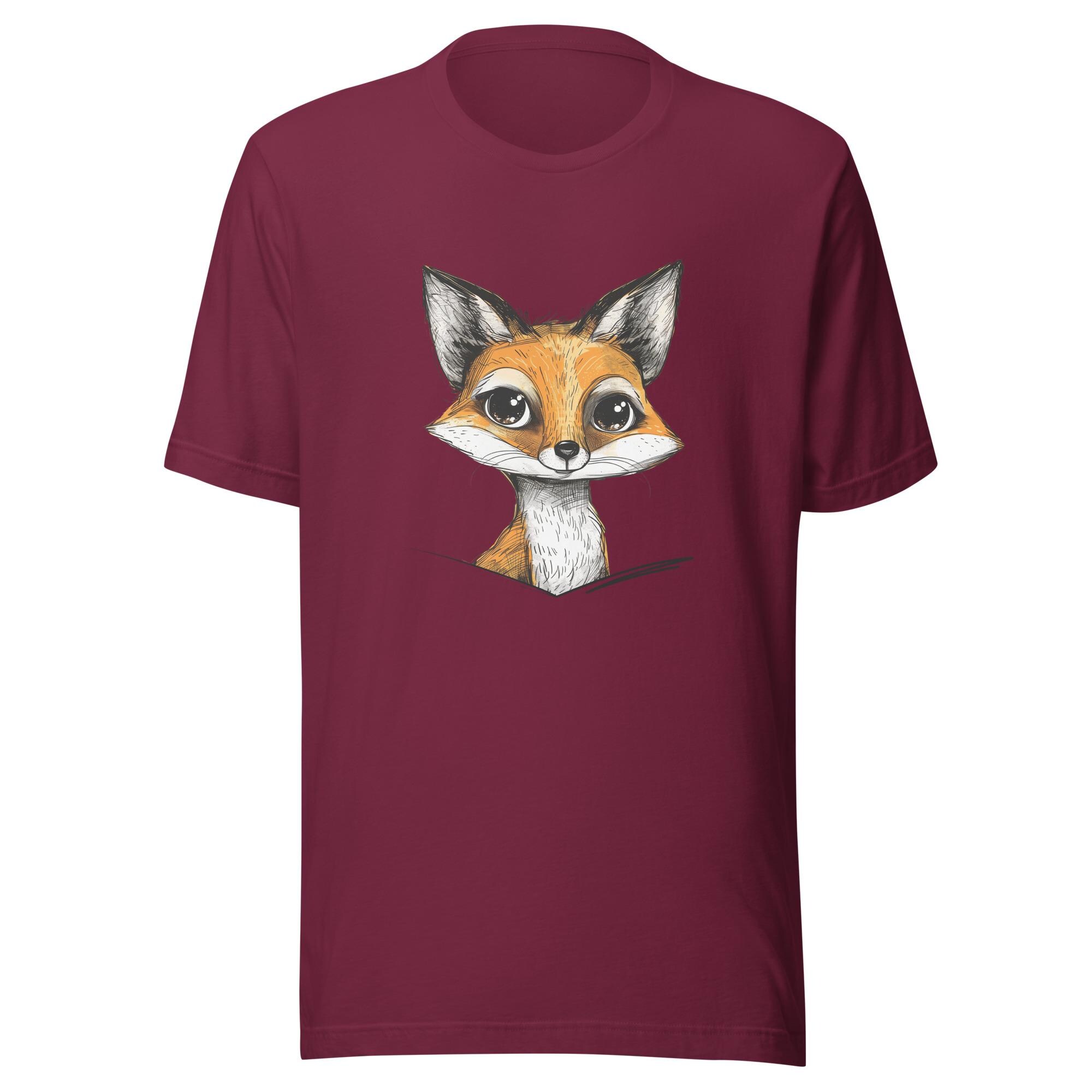 Unisex t-shirt Fox Tee, Animal Lovers Gift with Cute Cartoon Fox