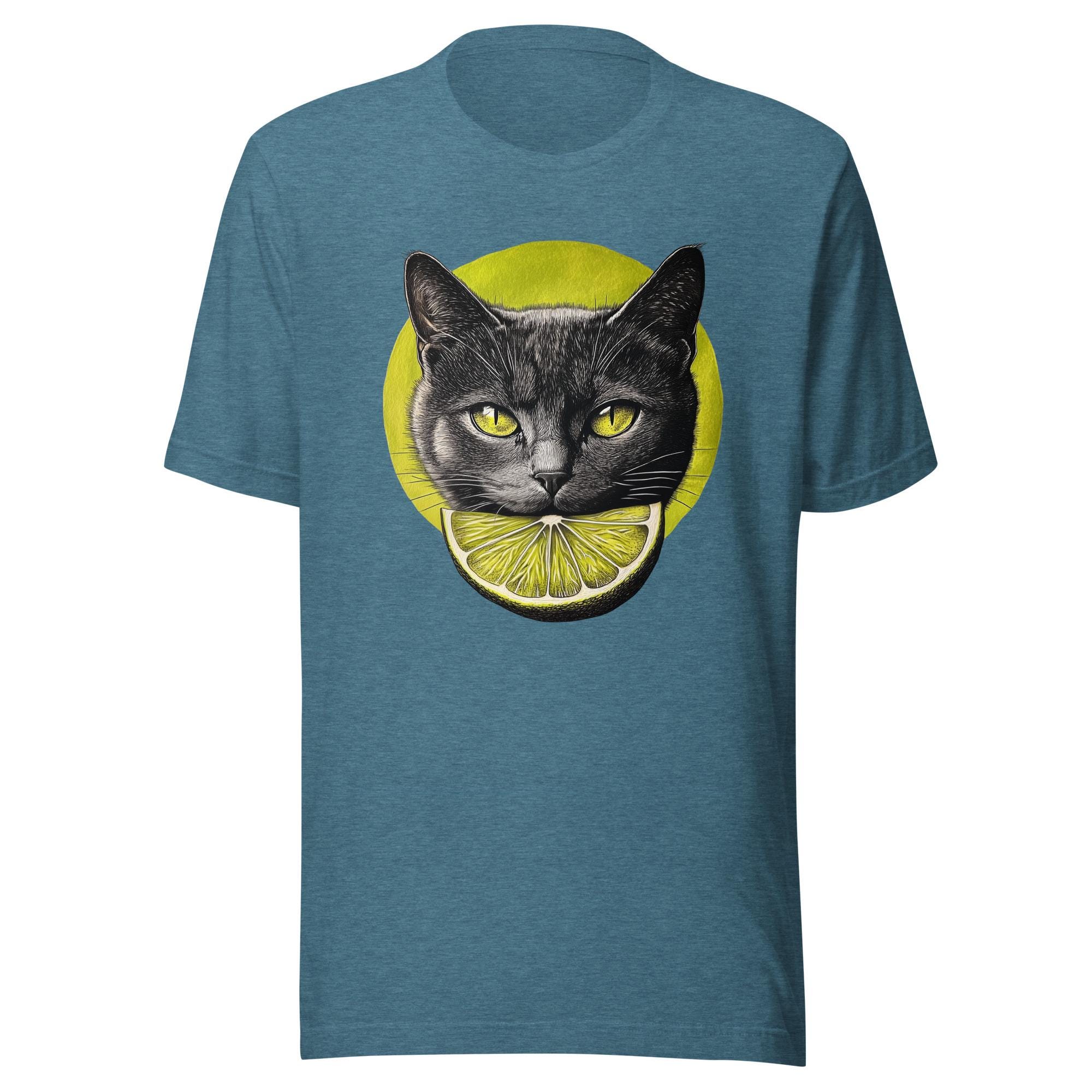 Did you know cats can see some shades of green better than humans? That’s why this T-shirt is their favorite (probably). Featuring a sleek black cat with lime-colored eyes and a matching citrus slice, this design screams cool and quirky. Whether you’re a cat lover, a citrus enthusiast, or just someone who likes unique outfits, this tee is a must-have. Stand out, start conversations, and maybe even inspire a few jealous stares at your wardrobe game.