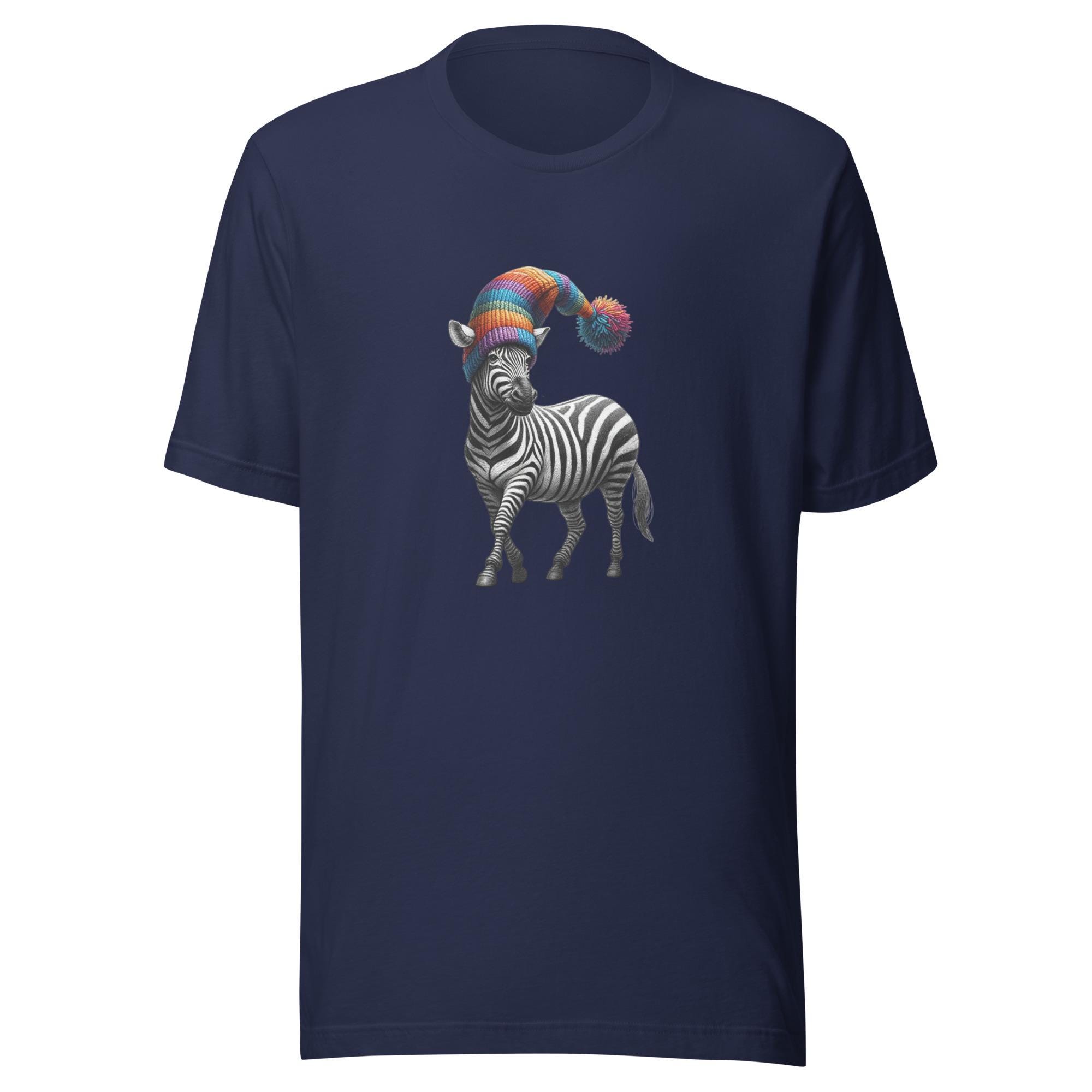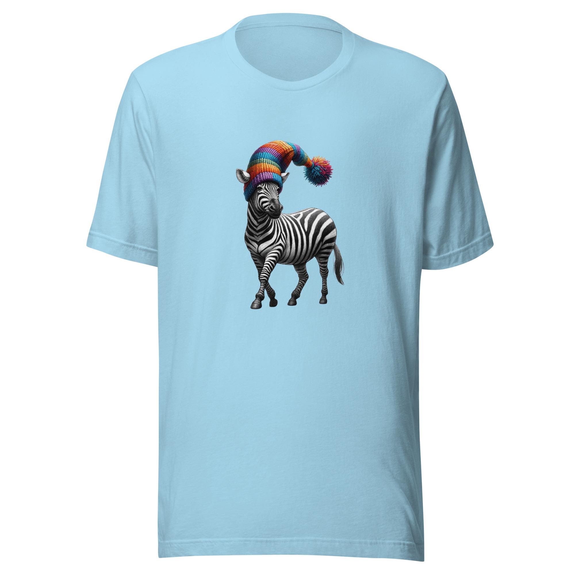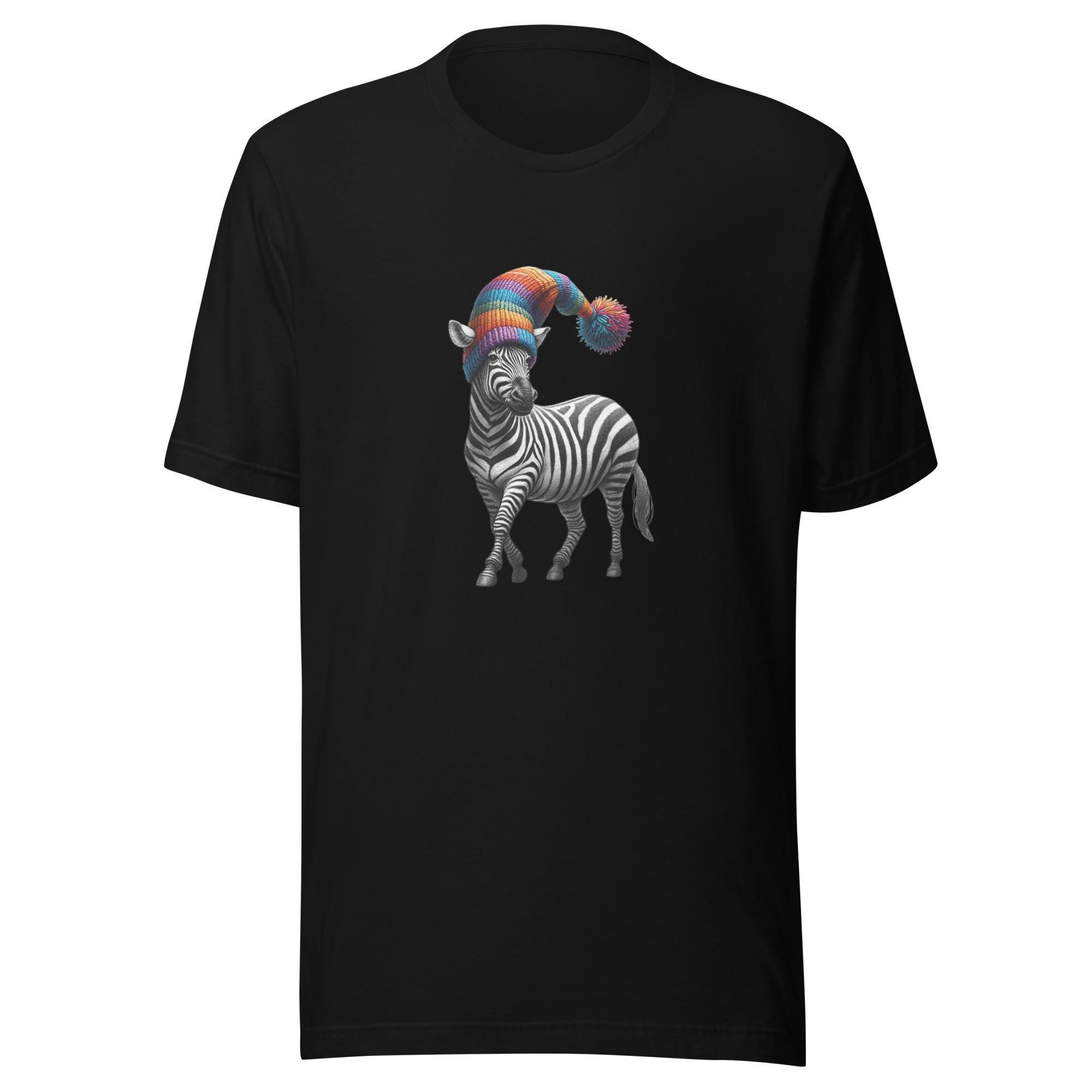 Take your style on a safari of humor with this quirky zebra T-shirt! Featuring a dapper zebra rocking a rainbow-colored hat, this design is a perfect blend of elegance and whimsy. Did you know that no two zebras have the same stripe pattern? Just like this unique tee, it’s one of a kind! A fantastic gift for zebra lovers, fans of funky fashion, or anyone who loves to stand out. Make every outfit a playful statement with this unforgettable design.
