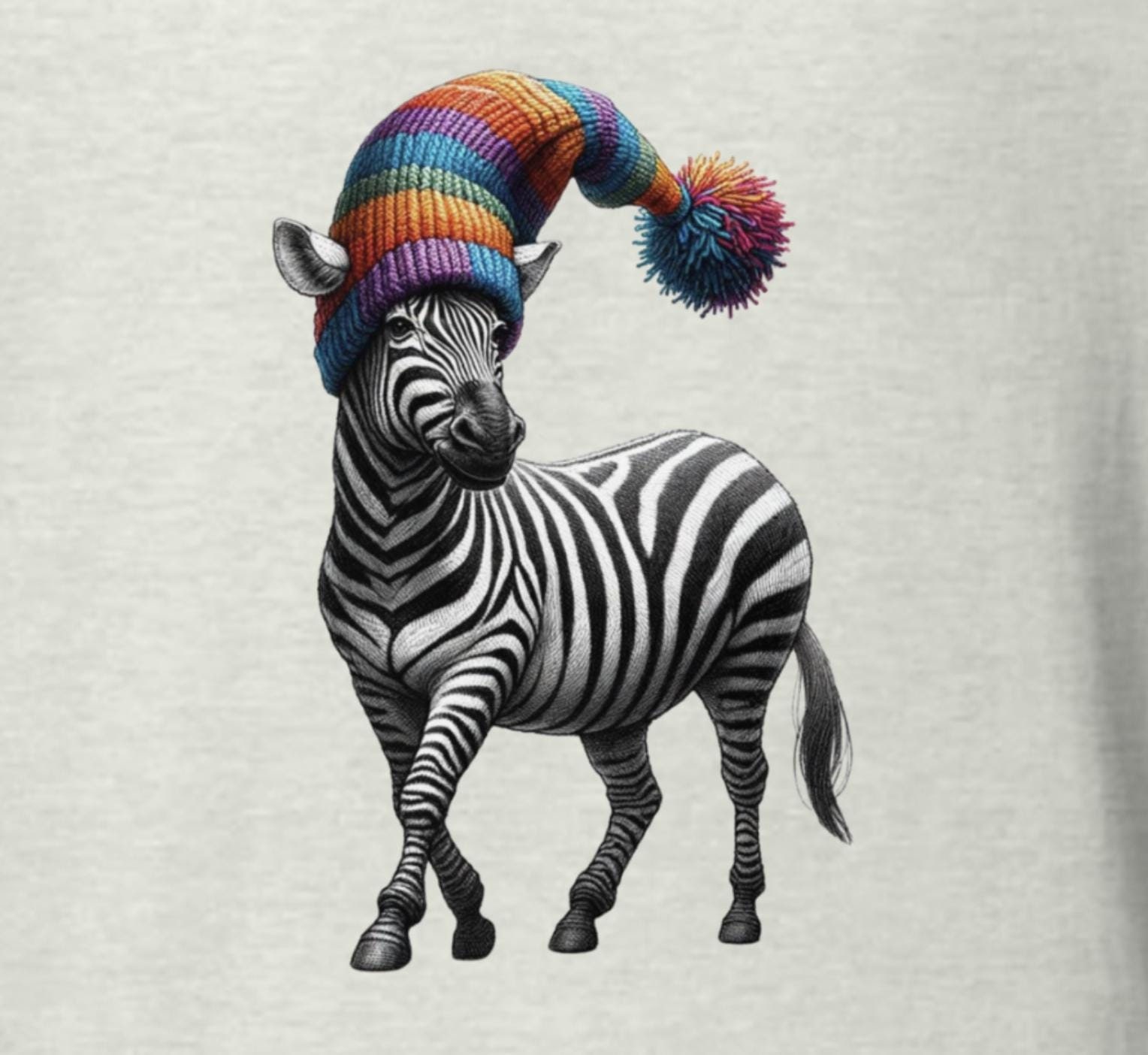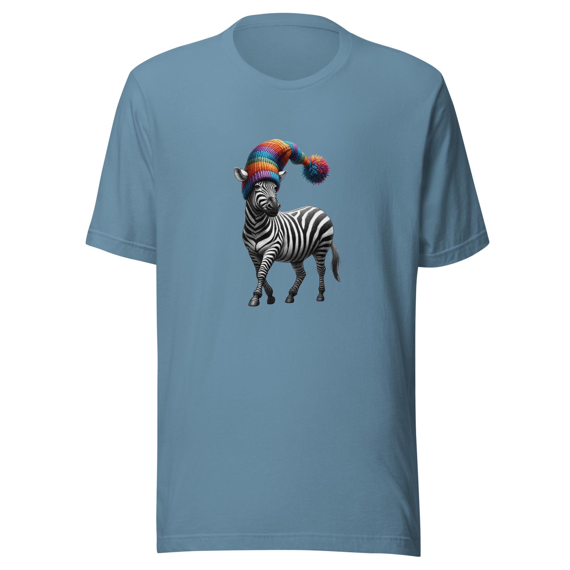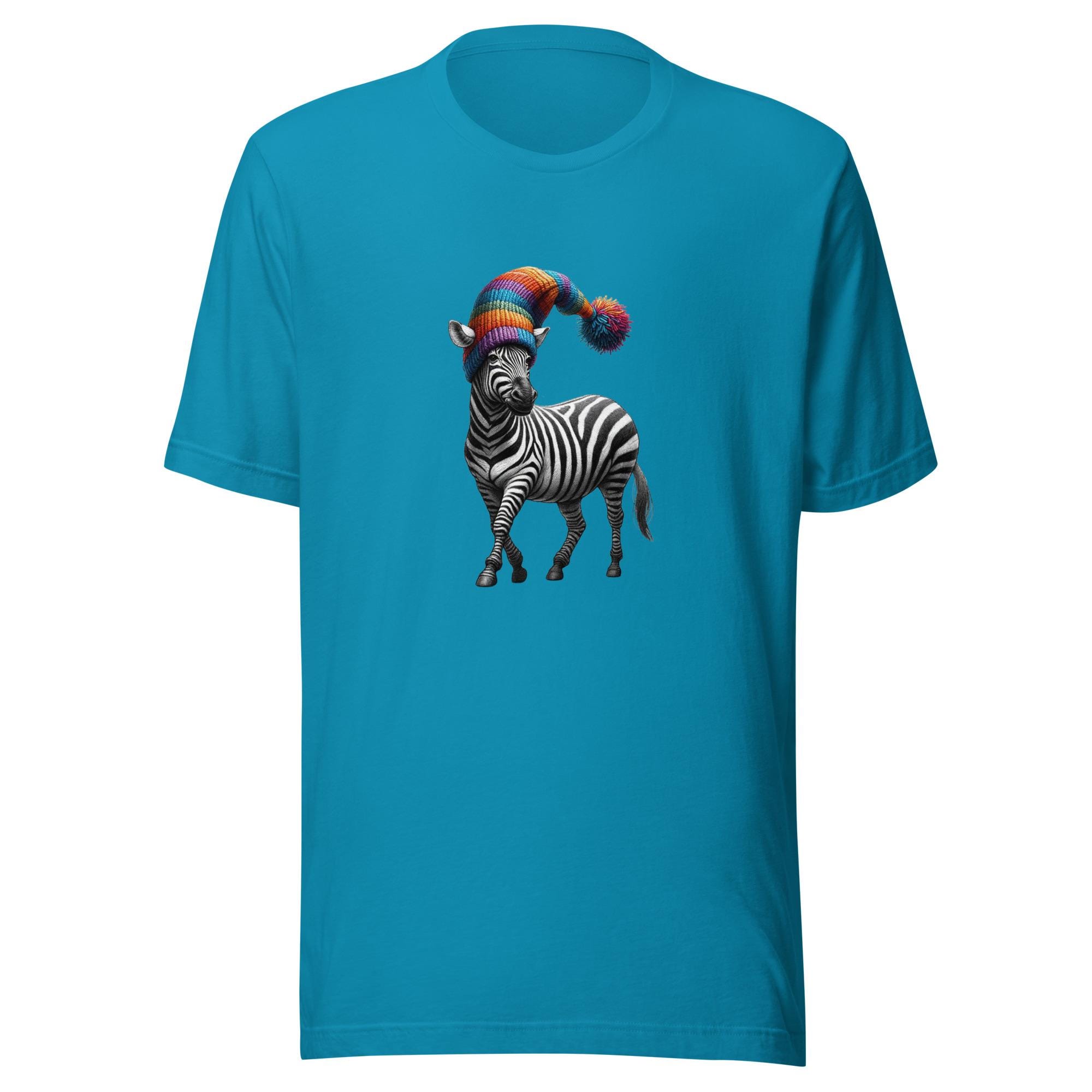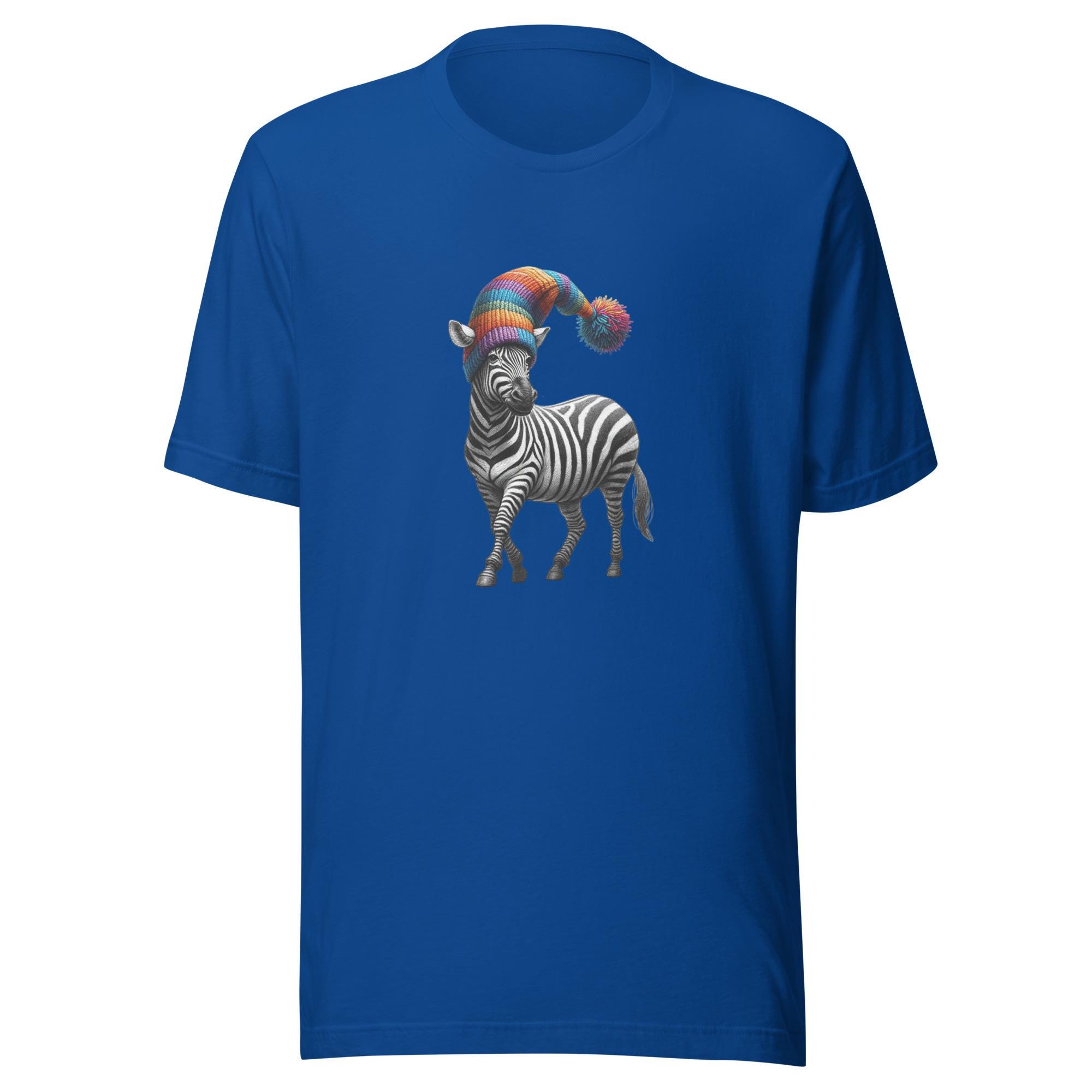 Take your style on a safari of humor with this quirky zebra T-shirt! Featuring a dapper zebra rocking a rainbow-colored hat, this design is a perfect blend of elegance and whimsy. Did you know that no two zebras have the same stripe pattern? Just like this unique tee, it’s one of a kind! A fantastic gift for zebra lovers, fans of funky fashion, or anyone who loves to stand out. Make every outfit a playful statement with this unforgettable design.