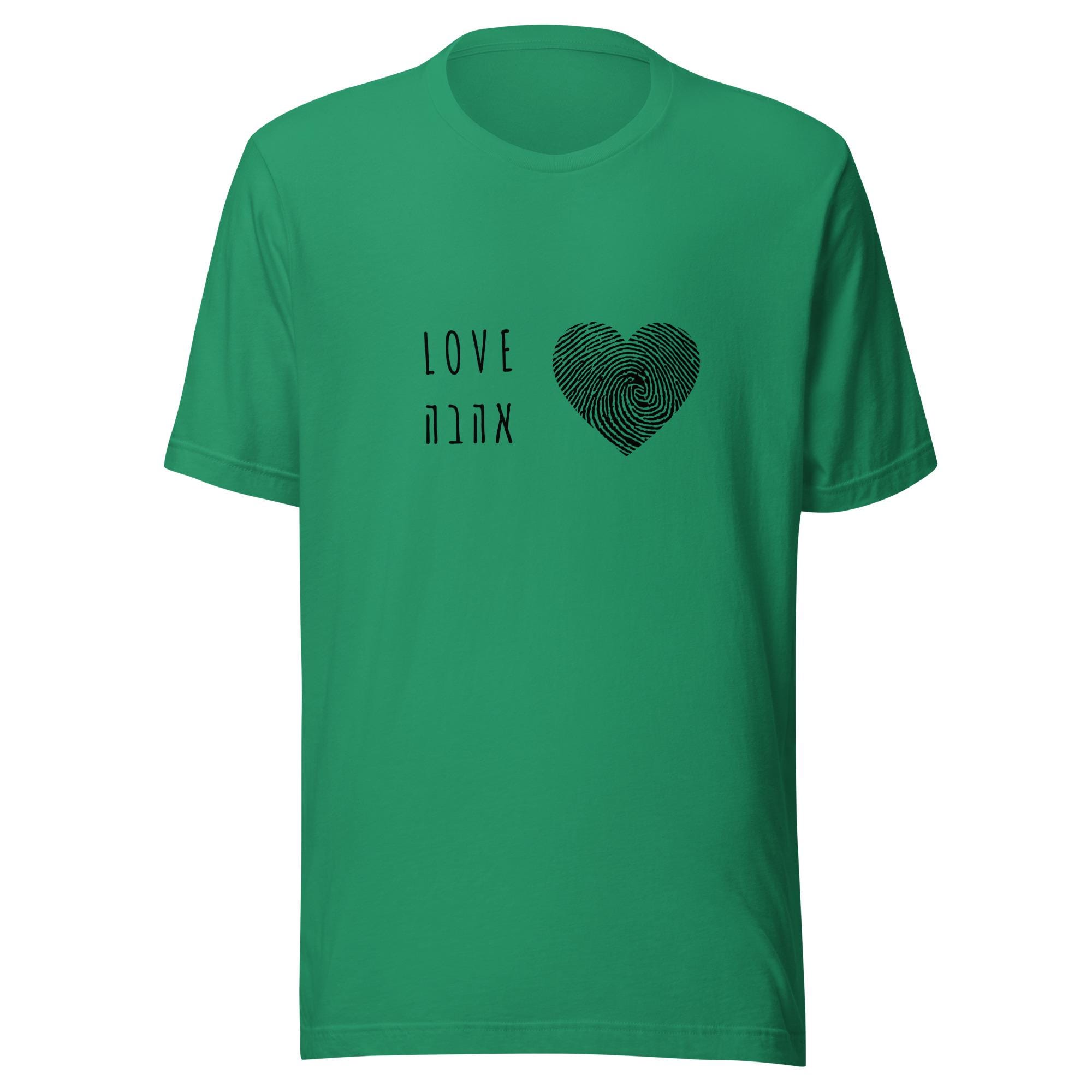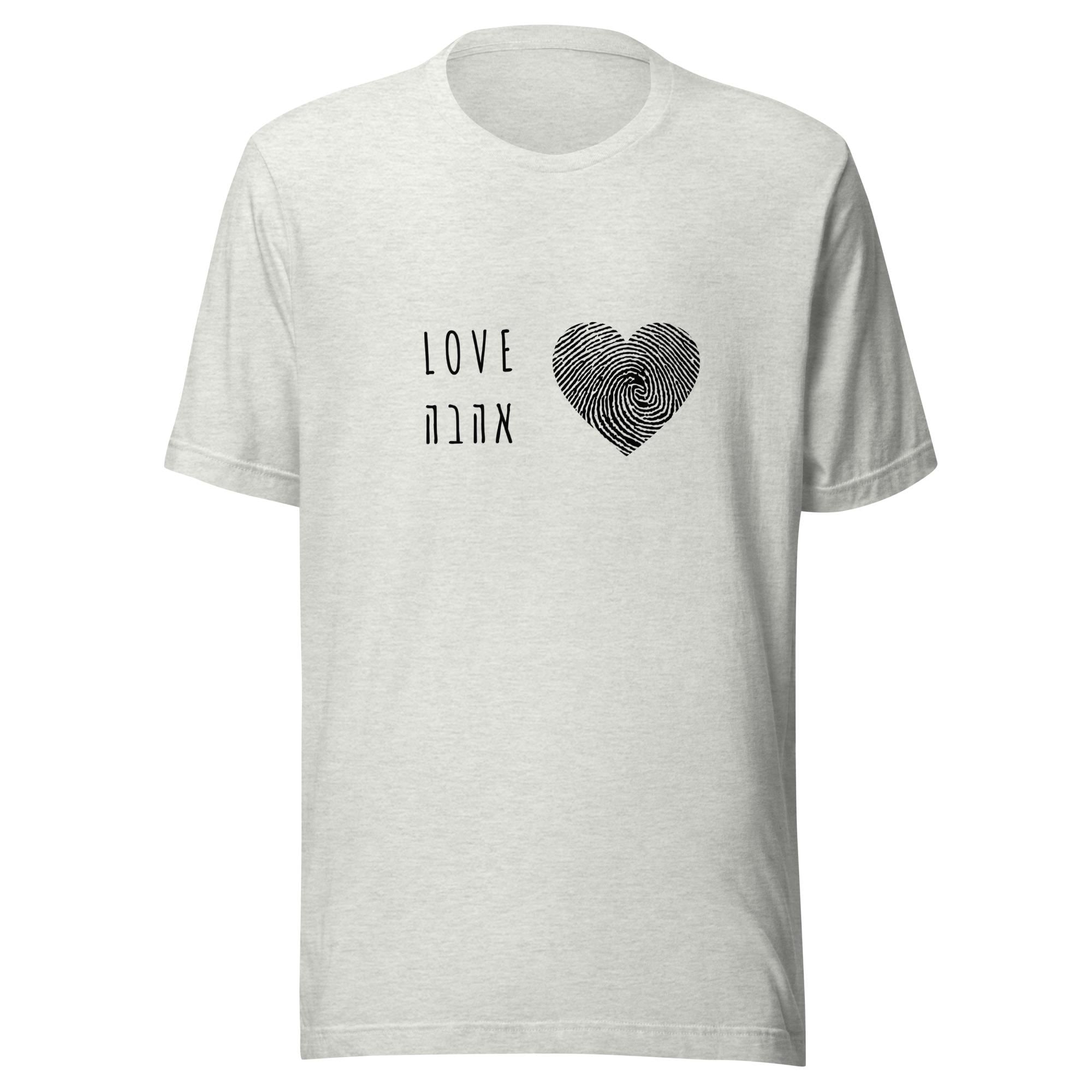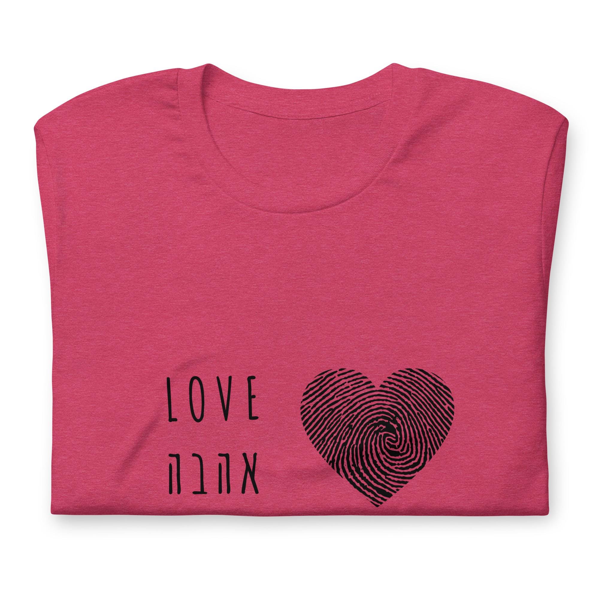 Unisex t-shirt Fingerprint Heart Love Shirt – Hebrew & English Tee for Valentine's Day, Unique Couples Gift