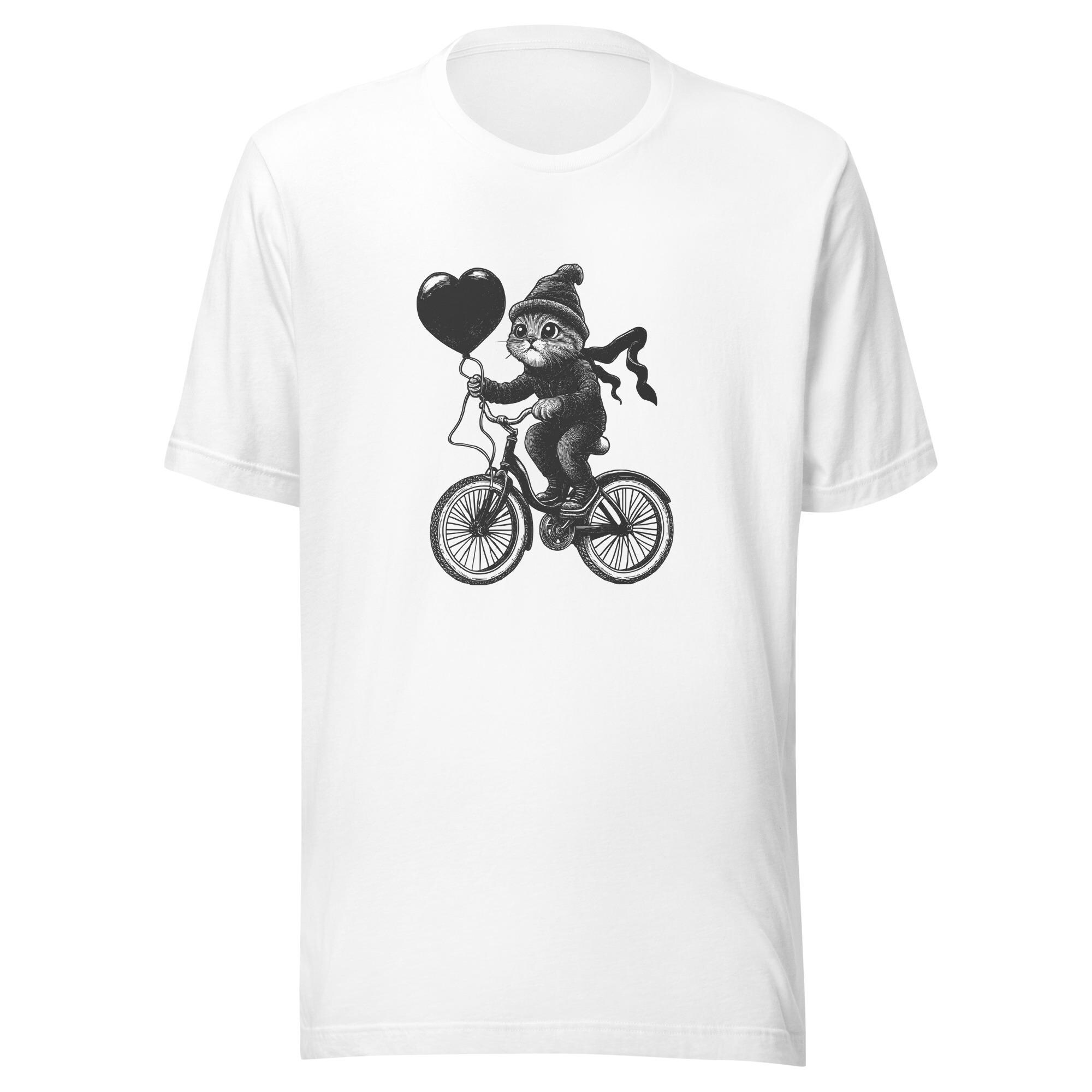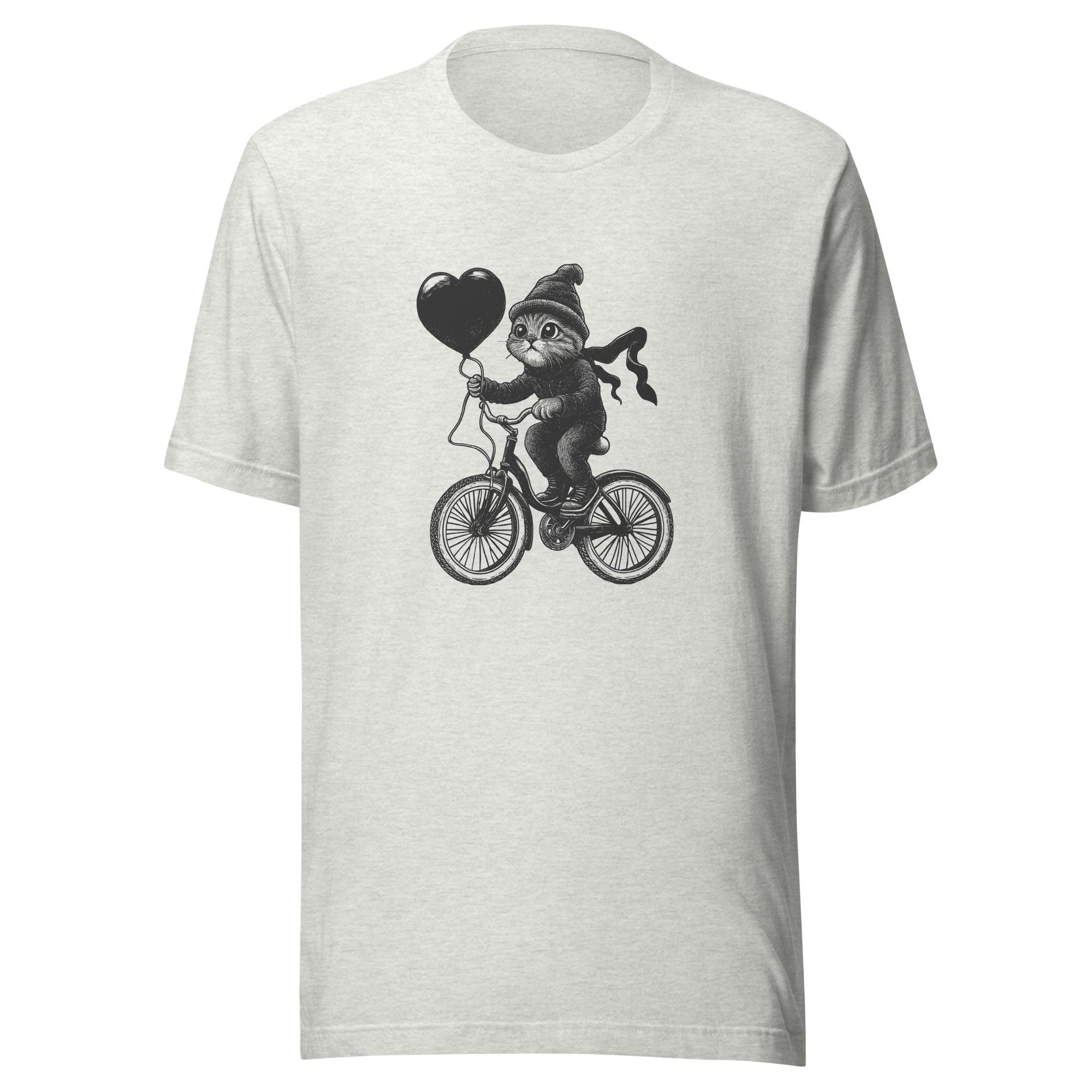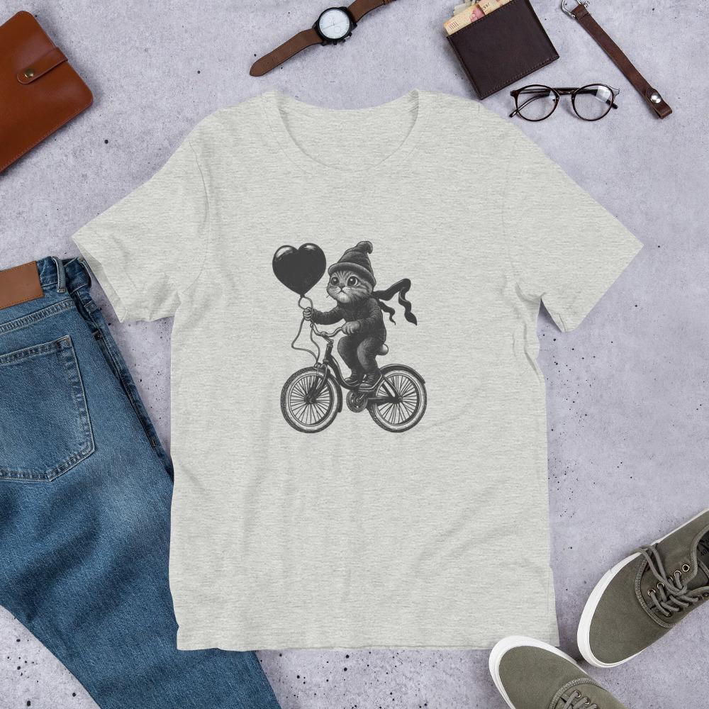 Unisex t-shirt Cat on a Bike – Cute Cycling Tee for Cat Lovers, Valentine's Day shirt