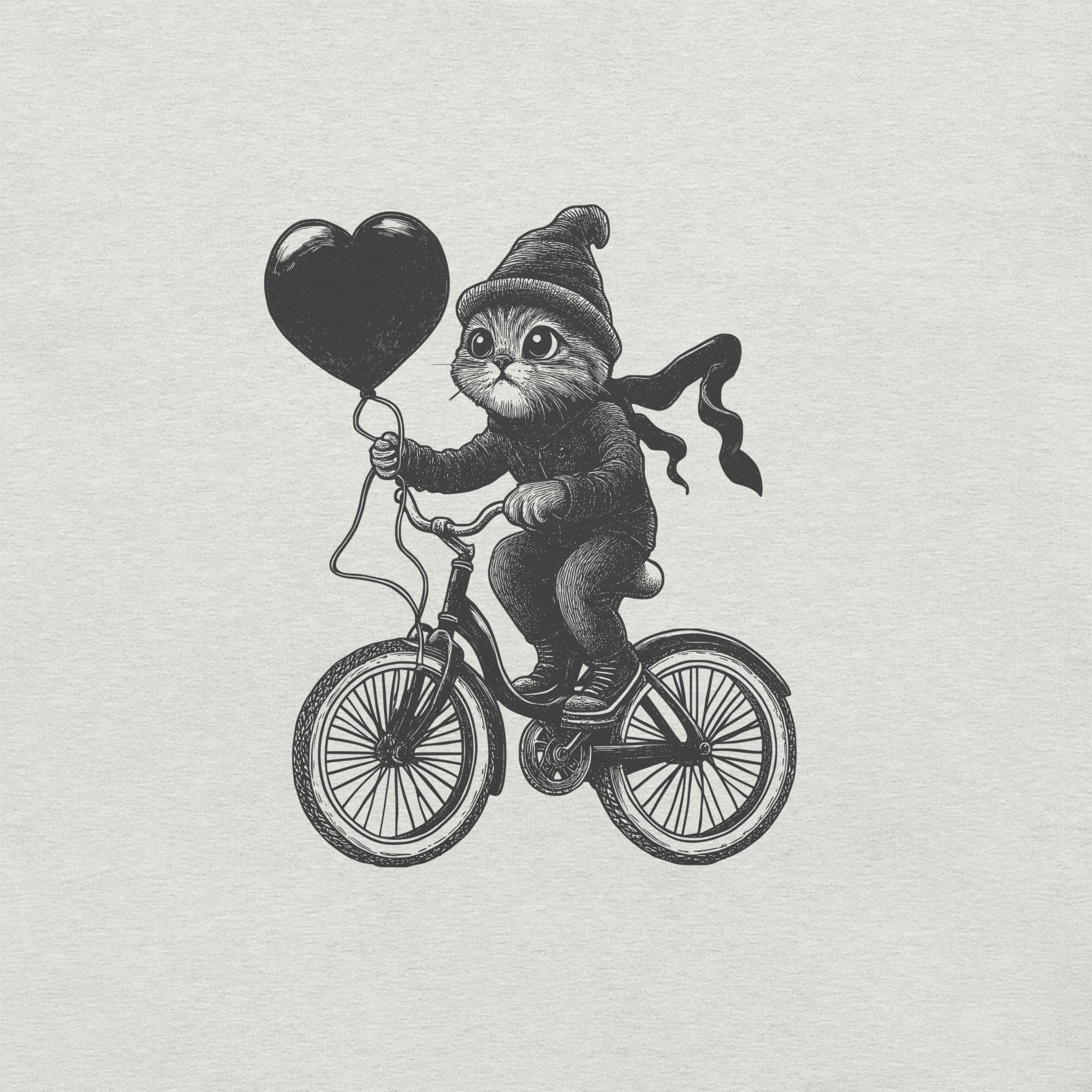 Celebrate your love for cats, bikes, and Valentine's Day with this Cat on a Bike T-Shirt! Featuring an adorable kitten riding a bike and holding a heart-shaped balloon, this tee is perfect for cat lovers, cycling enthusiasts, and anyone who appreciates quirky, unique designs. Whether it's a Valentine's Day gift, a birthday surprise, or just an everyday tee for yourself, this cycling t-shirt is both charming and versatile. Lightweight, comfortable, and full of personality, it’s a must-have for every cat-loving cyclist out there!