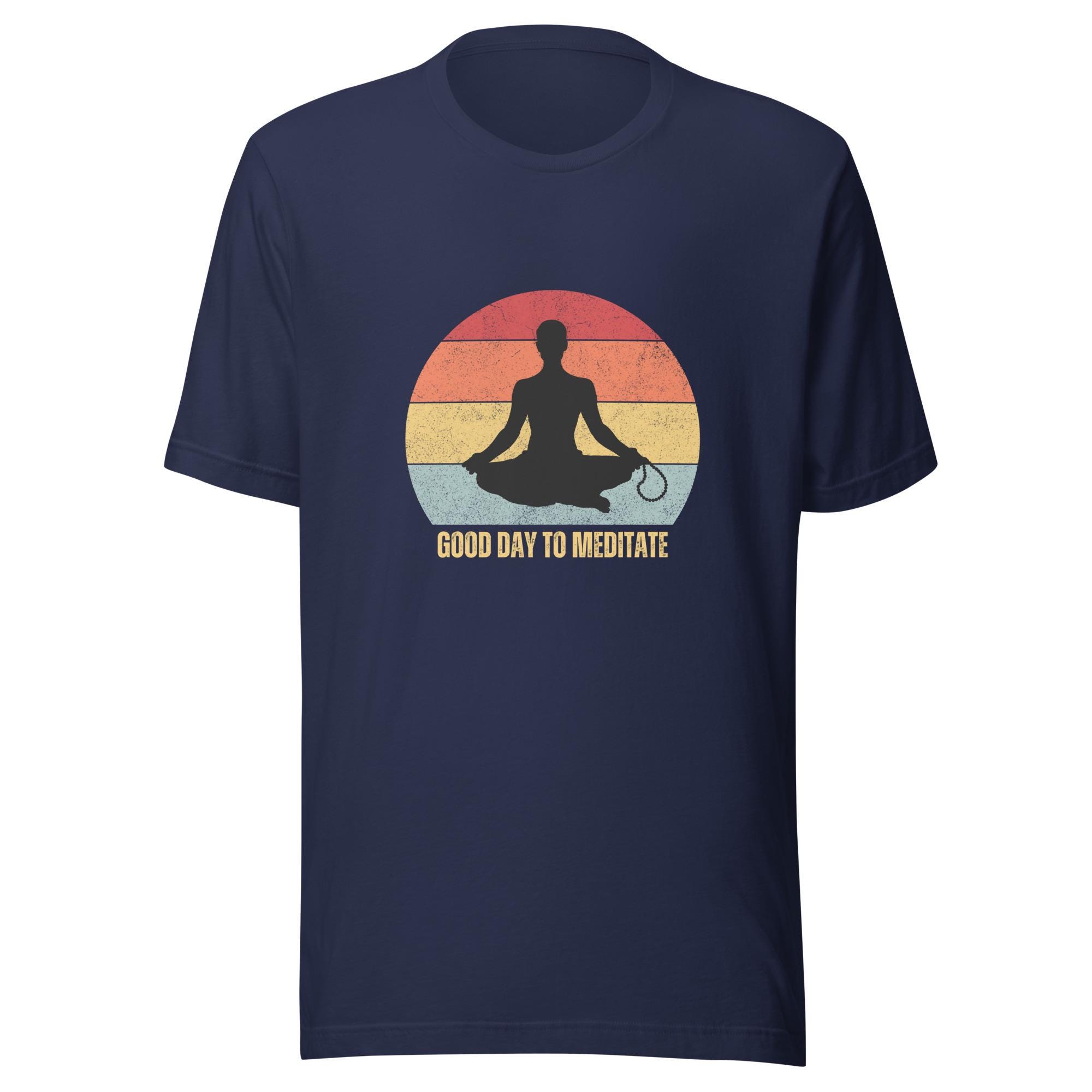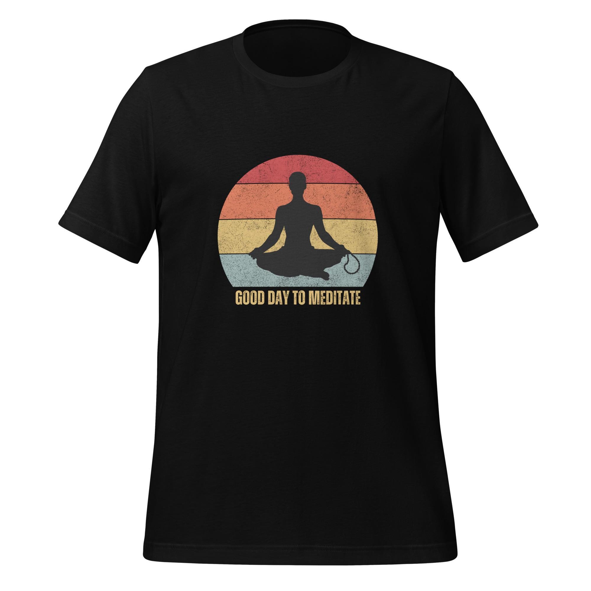 Every day is a good day to meditate, and this T-shirt serves as a gentle reminder to find your inner peace. Featuring a calming silhouette of a meditating figure against a retro sunset background, it’s perfect for yoga lovers, mindfulness practitioners, Buddhists, or anyone who appreciates the art of being present. Wear it to your yoga class, during your daily meditation, or as a statement of your balanced lifestyle. Soft, comfortable, and inspiring—this shirt radiates positivity and serenity wherever you go.