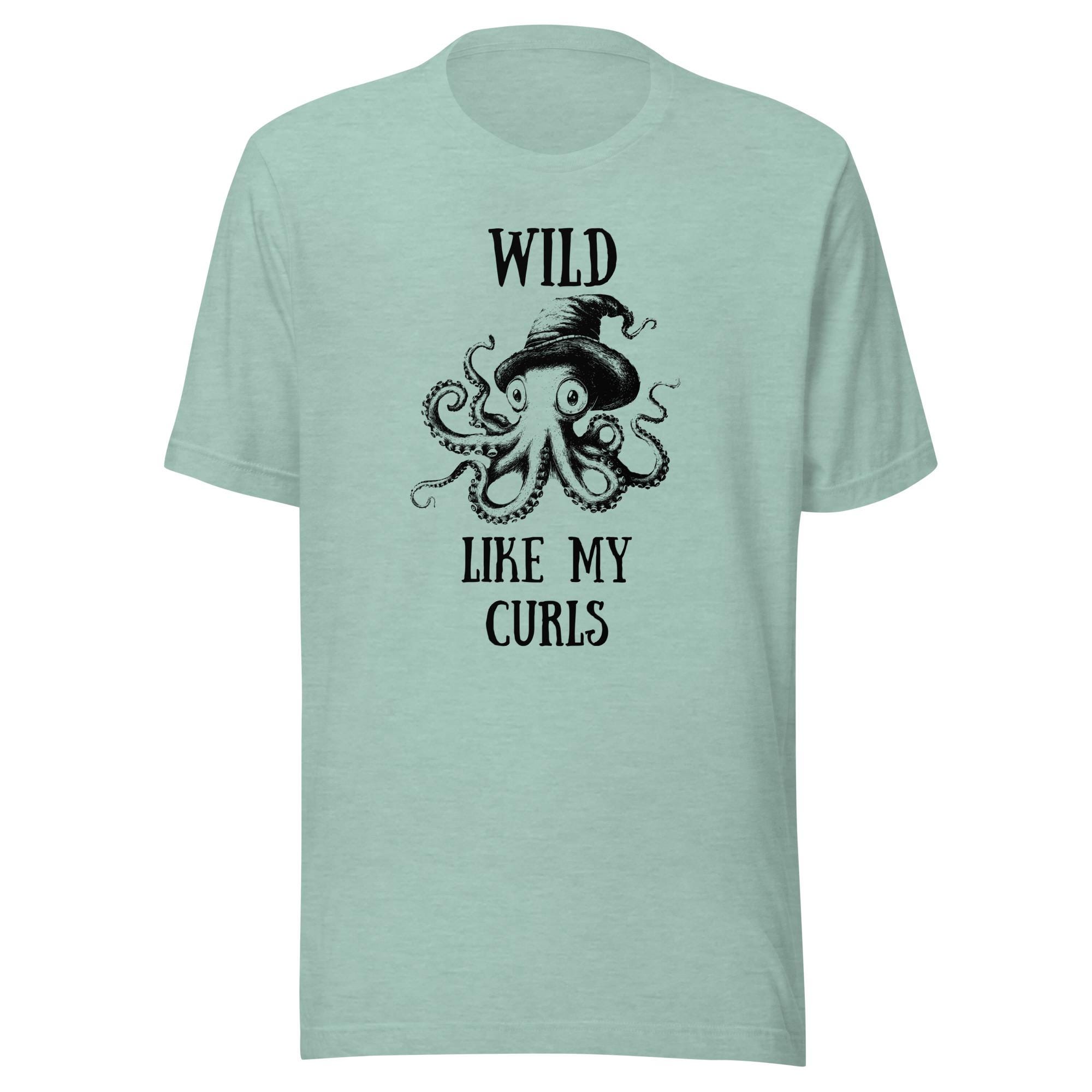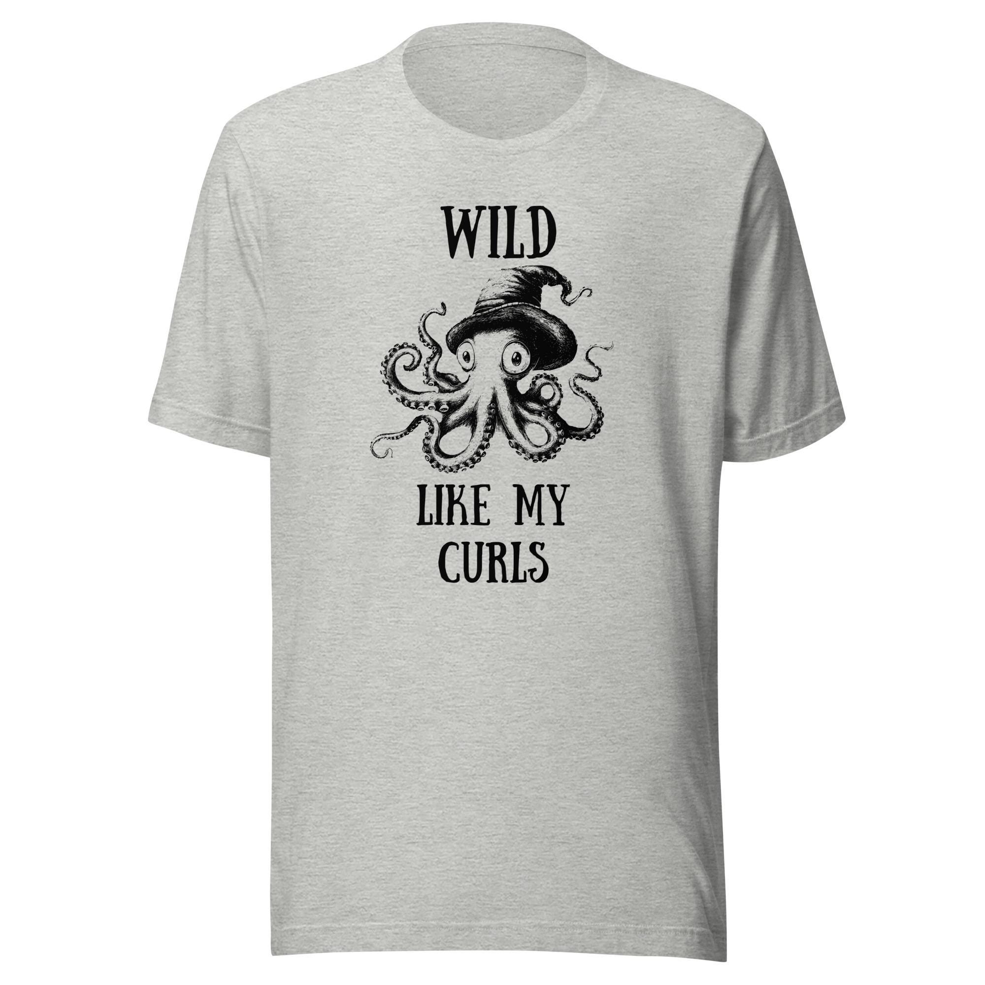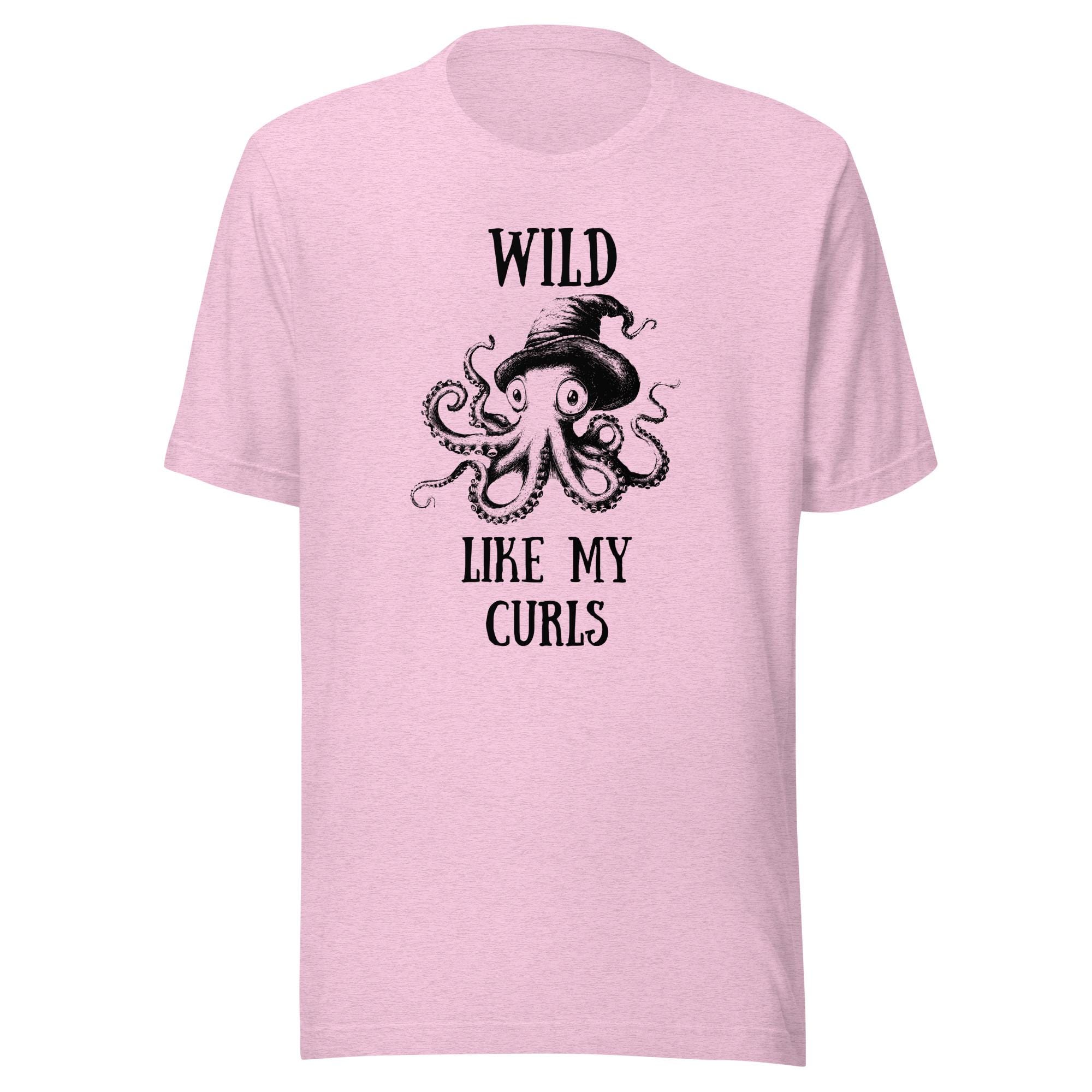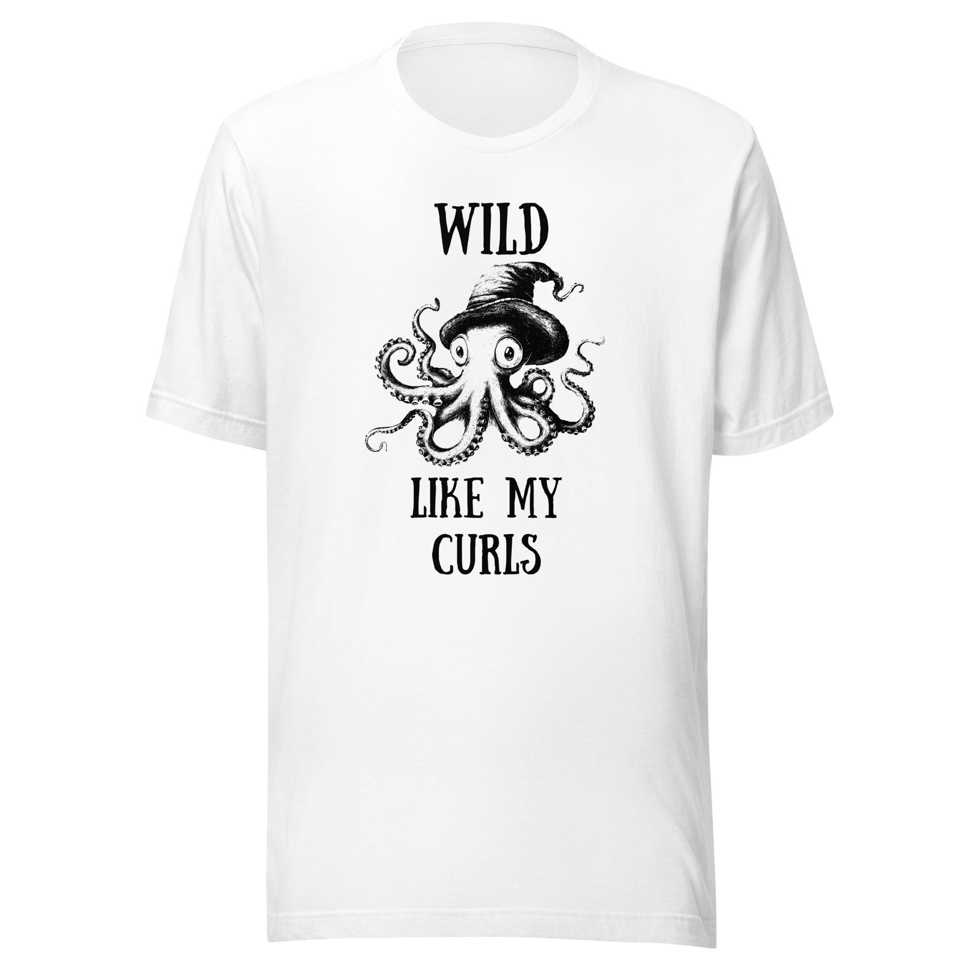 Dive into a sea of personality with this unique and playful "Wild Like My Curls" design! Featuring a hand-drawn octopus wearing a whimsical hat, this vintage-inspired black-and-white illustration captures an artistic flair with a hint of humor. The phrase "Wild Like My Curls" perfectly complements the bold tentacle details, making it a standout piece for anyone embracing their curly hair or unique style.