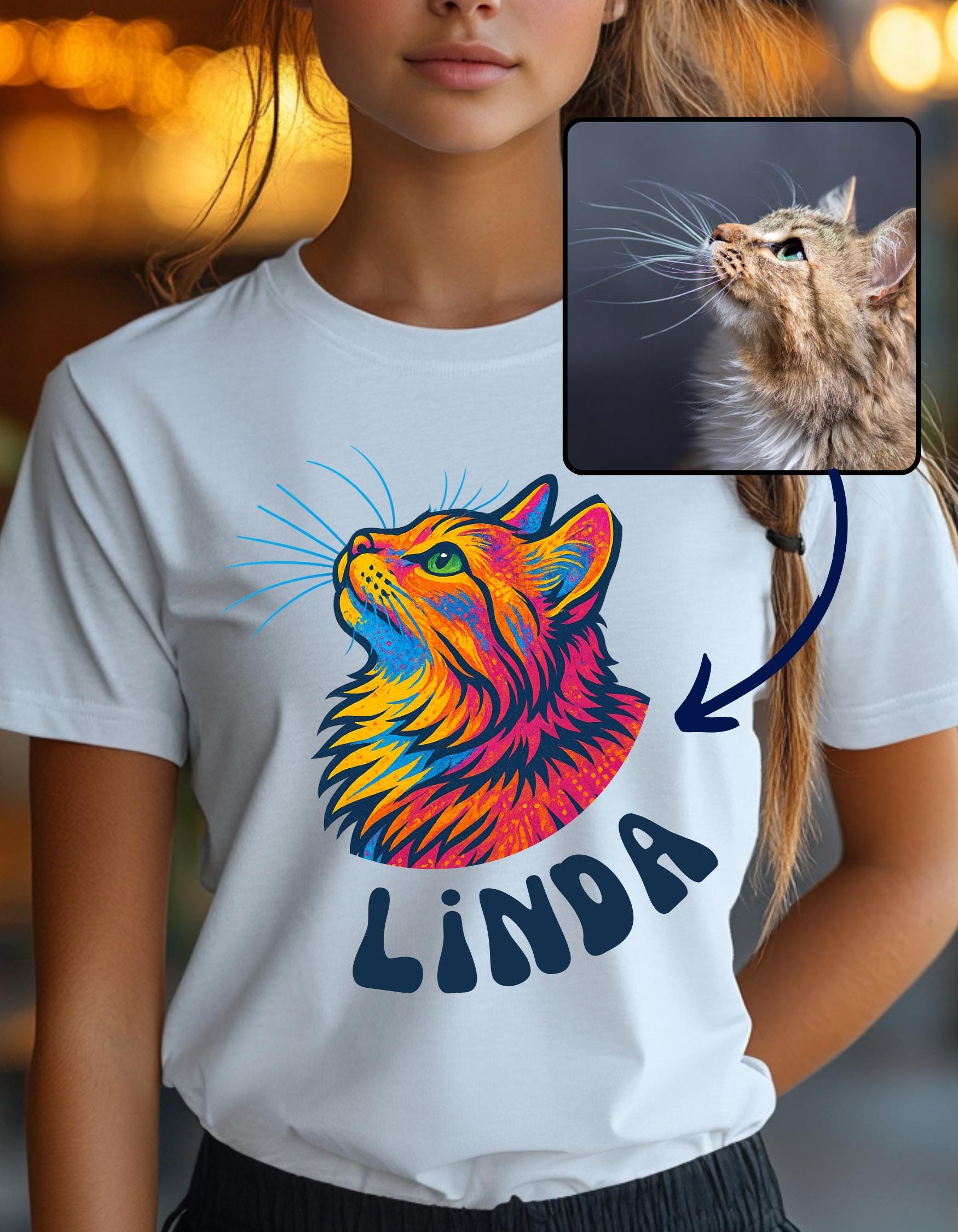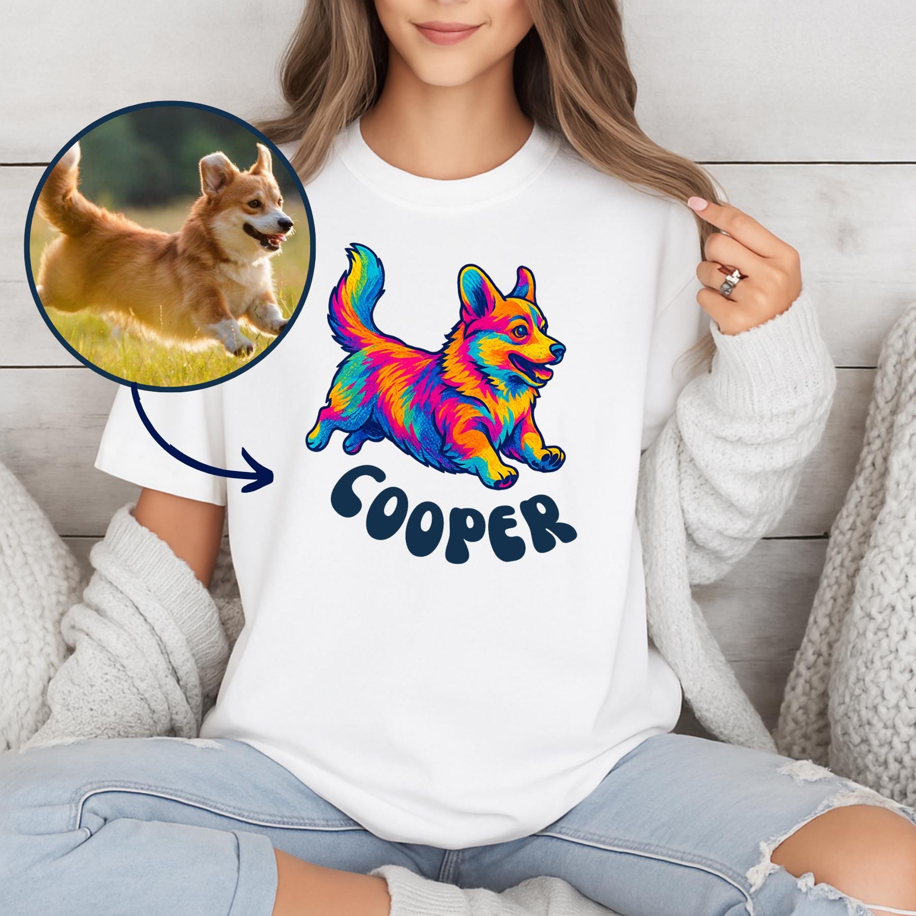 This custom pet portrait shirt is the perfect gift for any dog lover—or animal lover of any kind! Created from a cherished pet photo, each pet design is uniquely coloring in whimsical playful way to capture your furry (or feathered!) friend’s personality. Every pet, even black and white ones, will appear in bright, eye-catching colors. It’s a thoughtful, personalized keepsake that’s sure to be treasured. Whether you're celebrating a special bond or honoring the memory of a beloved pet, this custom shirt makes a heartfelt gift that will never be forgotten.