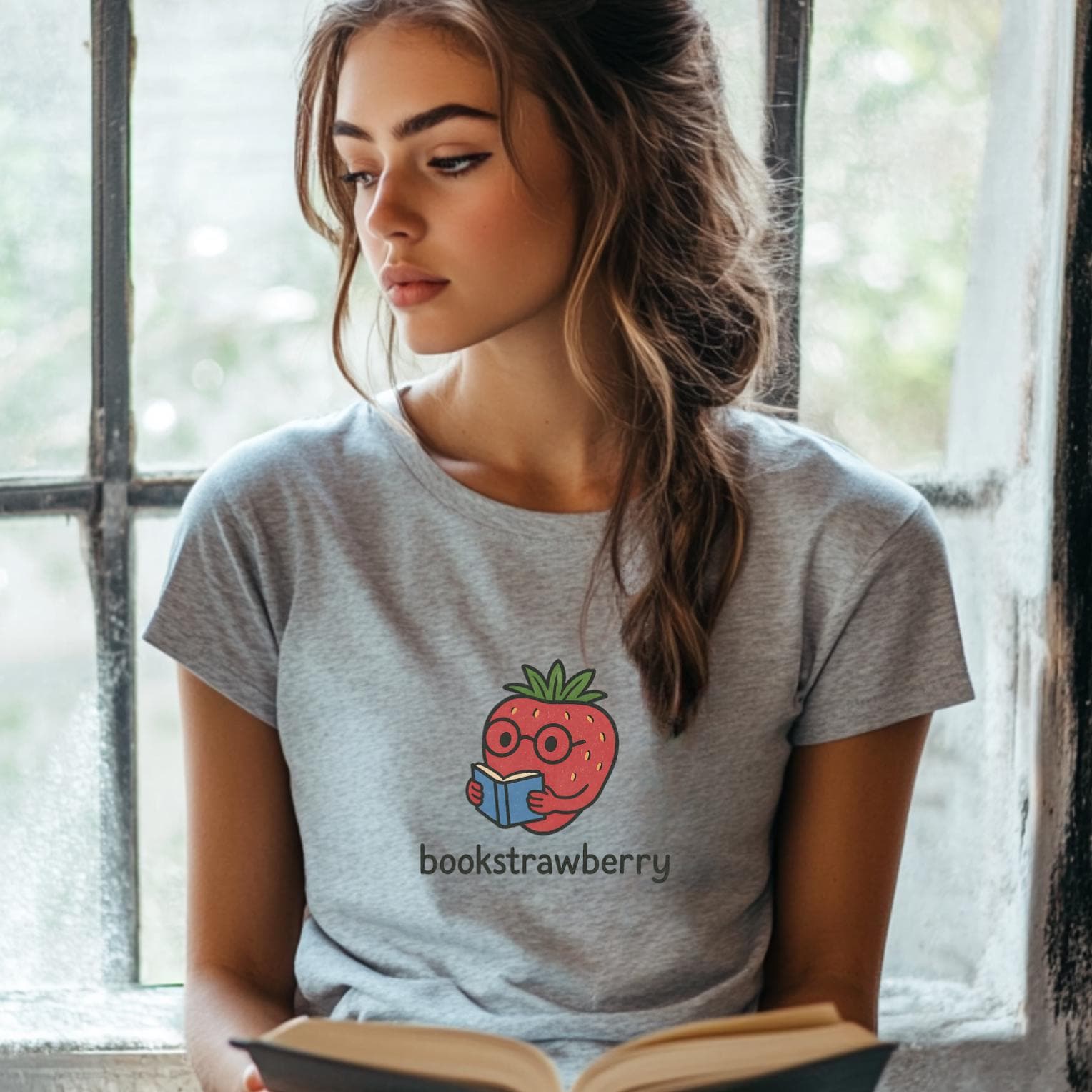 Meet Bookstrawberry – the sweetest little fruit nerd you'll ever wear! 🍓📚