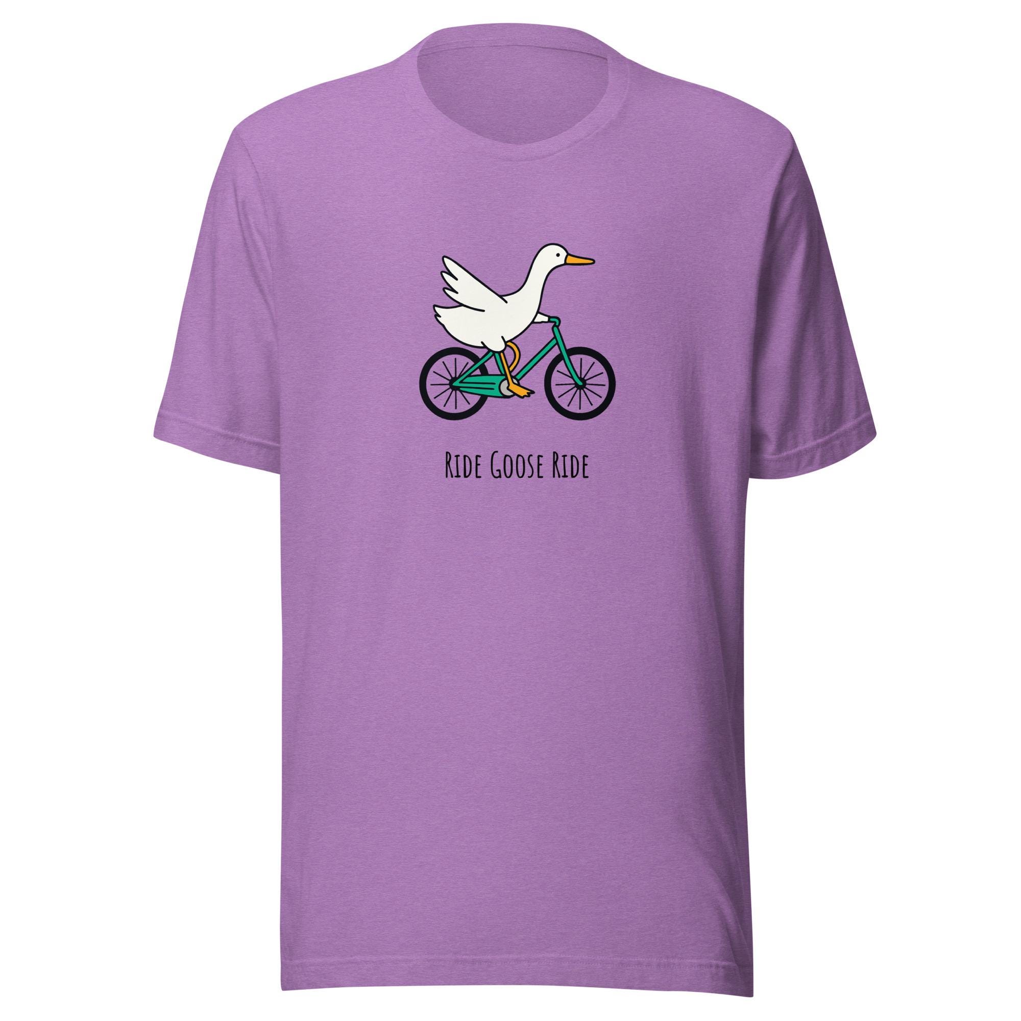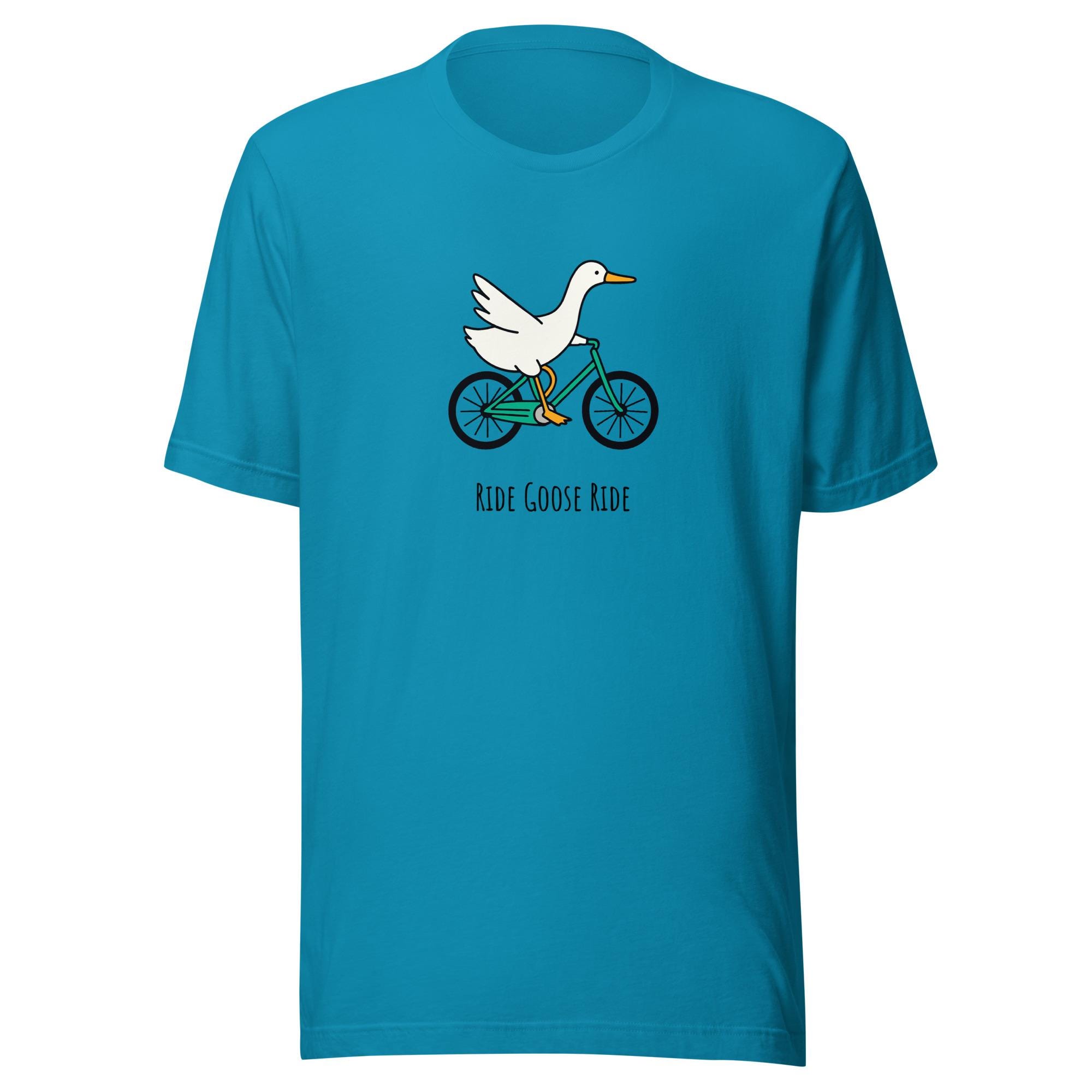 The ultimate shirt for the chaotic silly goose in your life. This quirky "Ride Goose Ride" tee features a goose confidently biking into mayhem — a perfect gift for goose fans, meme lovers, or cyclists with a sense of humor. Whether you’re escaping goose jail or just riding free, this tee has your back.