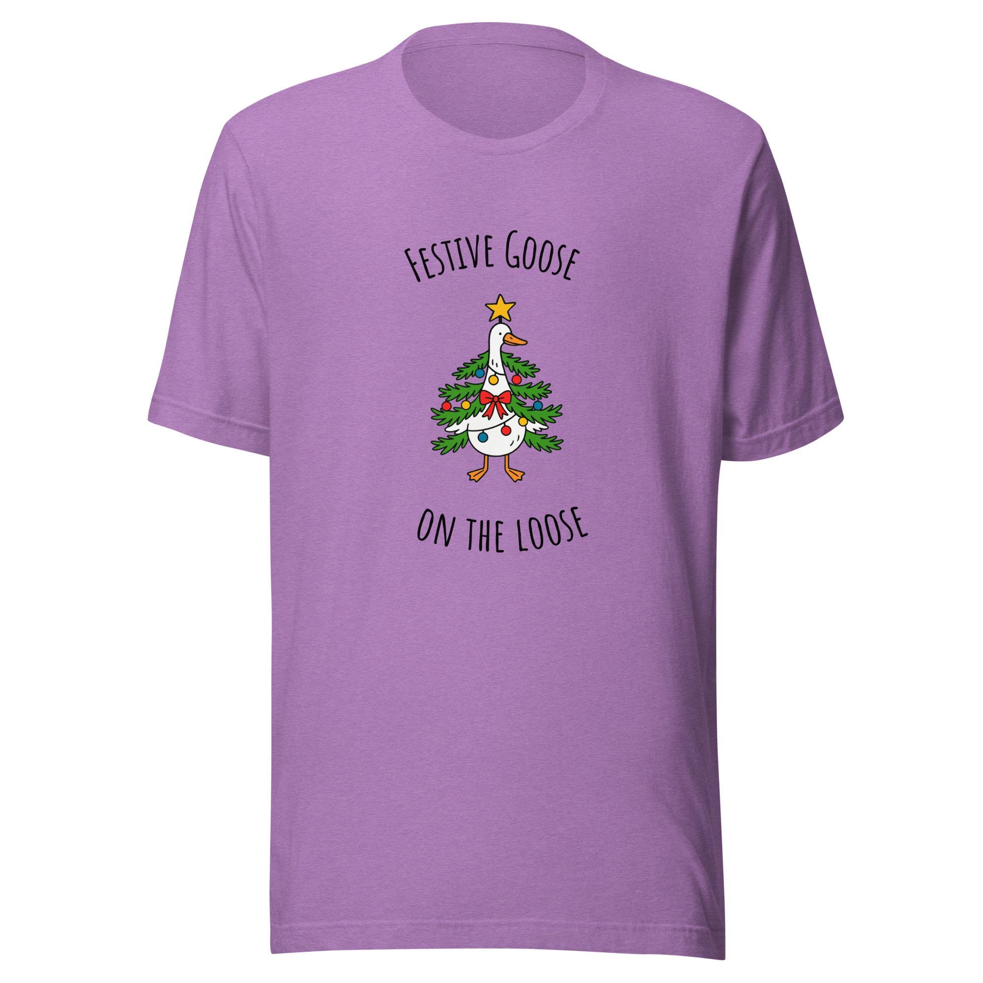 Make the holidays extra silly with this hilarious Christmas goose shirt! Featuring a white goose dressed up as a decorated Christmas tree, this quirky design is perfect for anyone who loves festive fun and a good laugh.